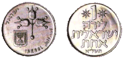 1 фунт | 27,5 | 9 | Аверс: Герб Израиля; текст «Израиль» на иврите, арабском и английском языках; Реверс: цифра «1»; текст «израильский фунт» и год выпуска на иврите. |