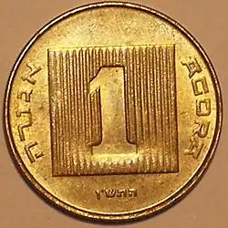 - ↑ Указ управляющего банком Стенли Фишера об отмене наличного обращения монеты достоинством в 5 агор (ивр.) (pdf). Банк Израиля (3 января 2008). Дата обращения: 10 октября 2012. Архивировано 8 декабря 2012 года.