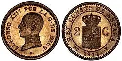 Из-за политической нестабильности начала XX века в 1904 году были выпущены последние золотые монеты, а в 1910 году прекращена чеканка крупных серебряных монет. В 1912 году вышли последние медные монеты[1][2]. В 1925 и 1927 годах была выпущена монета 25 сентимо из медно-никелевого сплава, а в 1926 году вышла последняя серебряная монета в 50 сентимо[1][2].