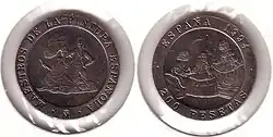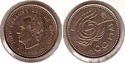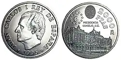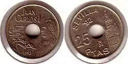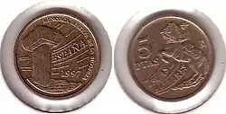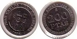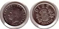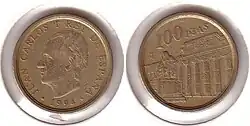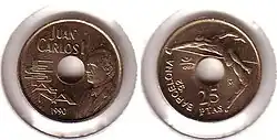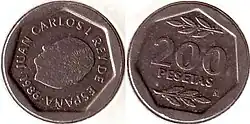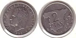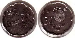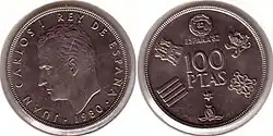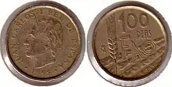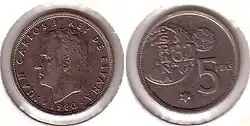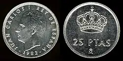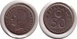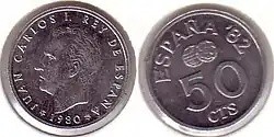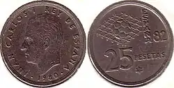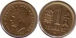 После смерти Франсиско Франко в 1975 году произошел переход Испании от диктатуры к демократии. В обращении появились монеты с портретом короля Хуана Карлоса I. В 1980 году были выпущены юбилейные монеты в 50 сентимо, 1, 5, 25, 50 и 100 песет, посвящённые Чемпионату мира по футболу 1982 года[1].