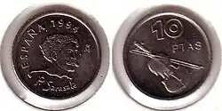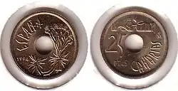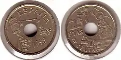 - ↑ Металлические евро (песеты и сантимы) - монеты Испании. allmoney.ru. Дата обращения: 2017. Архивировано из оригинала 18 января 2017 года. (рус.)