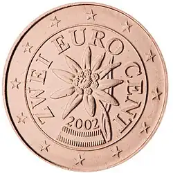 Австрийские монеты евро — современные денежные знаки Австрии. Каждая национальная сторона монеты обладает уникальным дизайном: на монетах маленького номинала изображены австрийские цветы, на более крупных — архитектура столицы Австрии, Вены, портреты знаменитых австрийцев, а также 12 звёзд ЕС и год выпуска. Дизайн делал Йозеф Кайзер.
