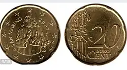 - ↑ Euro-Coins.Info. Тиражи монет евро Сан-Марино регулярного выпуска. Дата обращения: 18 августа 2018. Архивировано 19 августа 2018 года.