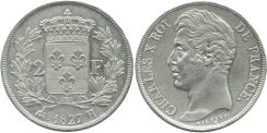 | 1825 | Серебро | 2 г | 18 мм | 1825 — 1831 | рубчатый | Номинал | Карл X | Всего выпущено: — 4 143 509 шт. |