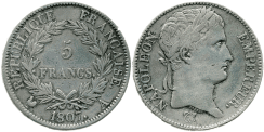 | 1800 | Серебро | 5 г | 23 мм | 1800 — 1816 | рубчатый | Номинал | Наполеон I | Всего выпущено: — 6 видов монет |