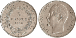 | 1853 | Серебро | 10 г | 27 мм | 1853 — 1866 | рубчатый | Номинал | Наполеон III | Всего выпущено: — 1 909 726 шт. |