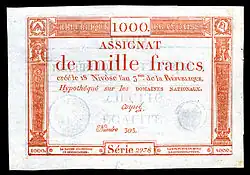 2 января 1795 года (13 нивоза III года), ещё до официального введения франка в качестве денежной единицы, был принят декрет Национального конвента о выпуске ассигнатов во франках.