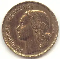 1950 Бронза — Алюминий 4 г 23 мм 1950—1958 рубчатый Номинал Марианна Всего выпущено: