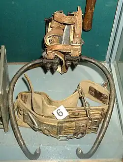 Выпускаются монтажные когти для подъёма на деревянные опоры и на железобетонные опоры.
