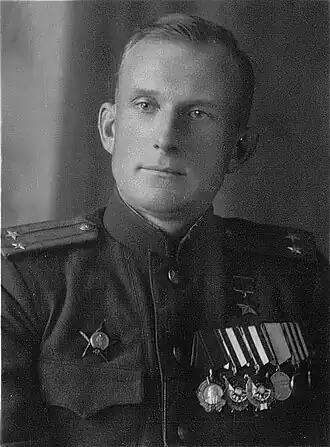 - ↑ Указ Президиума Верховного Совета СССР «О присвоении звания Героя Советского Союза генералам, офицерскому, сержантскому и рядовому составу Красной Армии» от 10 января 1944 года // Ведомости Верховного Совета Союза Советских Социалистических Республик : газета. — 1944. — 19 января (№ 3 (263)). — С. 1. Архивировано 7 декабря 2021 года.