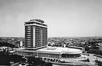 Здание гостиницы было расположено в треугольнике, образованном проспектом Наримана Нариманова (ныне — проспект Парламента) и улицей Мехти Гусейна. Архитектура гостиницы представляло собой контраст повторяющего рельеф участка одноэтажного и многоэтажного зданий[1].