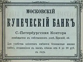 - ↑ Петроградский частный коммерческий банк за пятидесятилетие его существования. 1864-1914. — Петроград: Якорь, 1914. — С. 69—70. — 143 с.