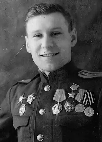- Медаль «Золотая Звезда» Героя Советского Союза (29.06.1945)[2][3].
