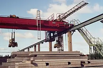 • Козловые краны с мостом, установленным на наземный рельсовый путь посредством двух опор[1].