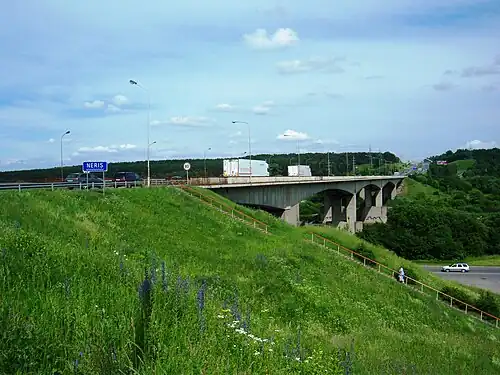 | Пересекает | река Нярис |