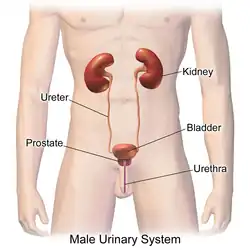 ![]() 1. Мочевыделительная система человека: 2. почка 3. почечная лоханка 4. мочеточник 5. мочевой пузырь 6. мочеиспускательный канал. | |