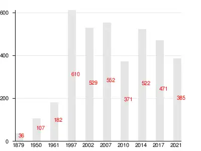 | 1879 | 1950 | 1997 | 2007[14] | 2010[15] | 2014[16] | 2017[1] |