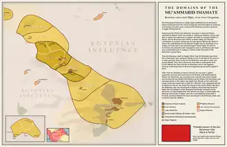Имамат был основан в 1818 году Мохаммедом бин Мишари Аль-Муаммаром, который провозгласил себя имамом под вассалитетом вассального правителя османского Египта Ибрагима-паши, вокруг разрушенного города Дирийя. Однако государство просуществовало недолго, поскольку в 1820 году было отвоевано саудовцами и включено во Второе саудовское государство.[1][4]