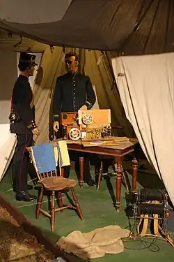Телеграфисты норвежской армии и их телеграф в 1888 году.