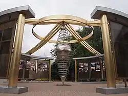 На площади перед музеем установлена металлическая скульптурная композиция в виде шанырака, установленного под ним веретена и шара, символизирующего Землю. Рядом установлены фигуры средневековых тюркских правителей и казахских ханов со штандартами, выполненные из металла и камня[8].