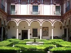 16 сентября 1835 года после восстановления и перестройки в здании был открыт музей. В 1868—1869 годах здание было вновь существенно реконструировано. После всех перестроек фасад здания приобрёл классические черты. Такой же характер носит и центральная лестница, строго оформленная пилястрами и фронтонами. Самой интересной частью здания являются внутренние дворы (патио), которые были характерны для многих построек Севильи на протяжении нескольких веков. Для оформления галерей внутренних дворов и вестибюля музея использована севильская керамика. В патио дель Алхибес находится замечательное керамическое панно с изображением мадонны, покровительницы монахов-доминиканцев, выполненное Христофором Аугуста в 1577 году и ранее находившееся в монастыре Мадре-де-Дьос. Другие образцы керамики относятся к первой трети XVI века, но не известно для какого здания они были первоначально изготовлены. В оформлении вестибюля и патио также использованы изразцы из монастыря святого Павла.