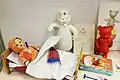 В школьном музее фотографии кукольных героев детских передач ленинградского телевидения и сами куклы: Хоха, Веснушка, Телевичок и другие.
