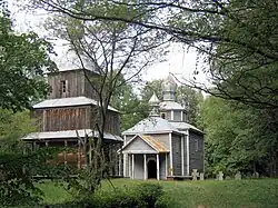 Кроме того есть копии общественных зданий: церквей, церковно-приходской школы, гамазея (общественный хлебный амбар), сельской управы.