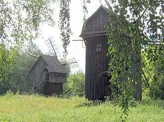 Ветряки: Органически вписались в архитектурный облик музея 15 ветряков, которые использовались в качестве мельниц для перемалывания зерна, как крупорушки для изготовления крупы и как сукновальни. Ветряки разделялись на два типа: столбовые и шатровые («голландки»).