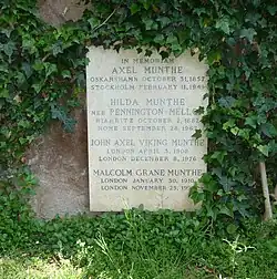 - ↑ H. M. Drottningens Läkare. Munthe, Axel Martin Fredrik, M. D. // Sveriges statskalender : [швед.]. — Stockholm : Kongl. boktryckeriet, P. A. Norstedt & söner, 1915. — P. 72.