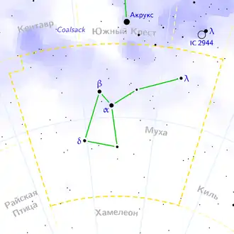 Му́ха (лат. Musca, Mus) — созвездие Южного полушария неба, лежащее в Млечном Пути южнее созвездия Южный Крест. Занимает на небе площадь 138,4 кв. градуса, содержит 60 звёзд, видимых невооружённым глазом.