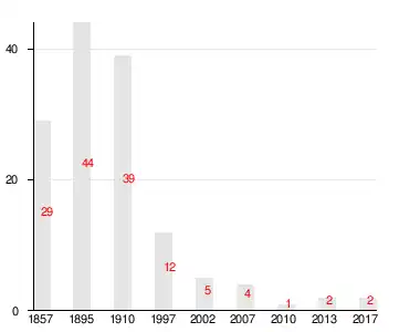 | 1997[15] | 2002[16] | 2007[17] | 2010[18] | 2017[1] |