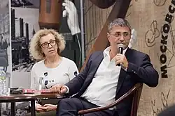 ![]() Александр Мясников на презентации книги «Пора лечиться правильно» в Московском доме книги (5 июня 2018 года). | |