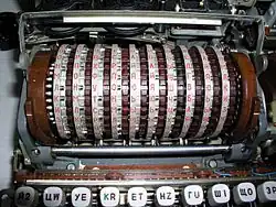 Сам по себе ротор производит простой тип шифрования — элементарный шифр замены[9]. Например, контакт, отвечающий за букву E, может быть соединён с контактом буквы T на другой стороне ротора. Но при использовании нескольких роторов в связке за счёт их постоянного движения получается более сложный, а следовательно, более надёжный шифр[10]. Так же[уточнить] шифрование происходит в электронном блоке под названием «коммутатор», который имеет 30х30 контактов. Код в коммутаторе набирается путём вставки перфокарты. Согласно отверстиям в перфокарте замыкаются контакты и производится замена символа по аналогии с шифродисками (ротор).