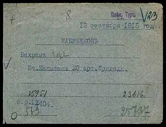 - ↑ Государственный архив Азербайджанской Республики, ф. 2898, оп. 2, д.3, л. 203