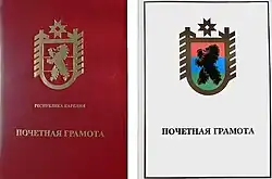 - Почётная Грамота Республики Карелия, учреждена в 1994 году (являлась высшей государственной наградой до 1 января 2019 года)