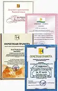 - почётная грамота Правительства Кировской области и благодарственное письмо Правительства Кировской области;