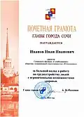 Почётная грамота и Благодарность главы города Сочи |