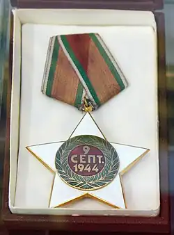 | Орден «9 сентября 1944 года» | 9 сентября 1945 года | 3 | 71 007 | Орден вручался за участие в восстании 9 сентября 1944 года, которое привело к свержению монархии в Болгарии. | |