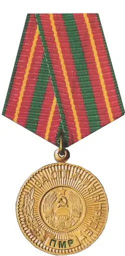 | «За оборону Приднестровья» | Нагрудный знак «За оборону Приднестровья» установлен для награждения с целью оценки воинского долга граждан перед Приднестровской Молдавской Республикой. | |