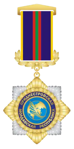 Орден Республики | Орден Республики вручается за особо выдающиеся заслуги в трудовой деятельности, защите Приднестровской Молдавской Республики, развитии дружбы и сотрудничества между народами, укреплении мира и иные особо выдающиеся заслуги перед Приднестровской Молдавской Республикой и обществом. | I степень |