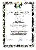 Копия распоряжения председателя Тюменской областной Думы о награждении Благодарственным письмом коллектива предприятия, организации или учреждения направляется на имя руководителя.