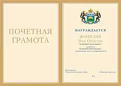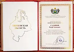 • свидетельство о присвоении звания «Почётный гражданин Тюменской области»;