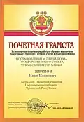• "Заслуженный работник сферы обслуживания населения Чувашской Республики";