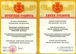 • "Заслуженный сотрудник органов внутренних дел по Чувашской Республике";