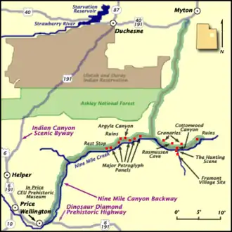 - Nine Mile Canyon Backway at National Scenic Byways Program