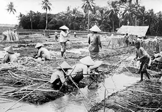 По состоянию на 2010 год в Индонезии проживало 237,641 млн человек (в 1930 году — 60,6 млн человек, в 1961 году — 97 млн, в 1971 году — 119,2 млн, в 1980 году — 147,5 млн[3]). 90 % населения приходится на долю 15 крупнейших народов и этнических групп. Наиболее многочисленными среди коренных индонезийцев являются яванцы, сунды (или сунданцы), батаки, индонезийские малайцы, мадурцы, минангкабау, батавцы (или бетави) и бугисы. К достаточно крупным народам и этногруппам относятся ачехцы, бантенцы, банджары, балийцы, сасаки, даяки, макасары, минахасцы и чиребонцы. Среди этносов некоренного происхождения наиболее многочисленными являются китайцы, арабы, индийцы, а также потомки от смешанных индонезийско-европейских браков — евразийцы (они же индоевропейцы или так называемые индо)[4][2][5].