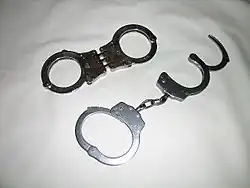 Нару́чники — устройство в виде двух закрывающихся на ключ металлических браслетов, как правило соединённых между собой небольшой цепочкой. Используется, как правило, силовыми структурами государства (армия, полиция, спецслужбы) либо выполняющими аналогичные функции негосударственными организациями для ограничения свободы действий человека посредством сковывания его рук. Поэтому подвергшийся применению устройства часто называется закованным [в наручники].