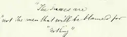 Согласно докладу Лонга, надпись, прочитанная им, была следующей: англ. «The Juwes are the men that will not be blamed for nothing»[К 2][2].