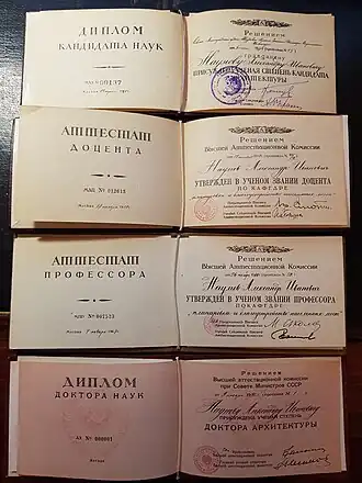 | Учёная степень | доктор архитектуры |