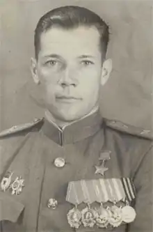К декабрю 1943 года совершил около 400 боевых вылетов, провёл около 60 воздушных боя, лично сбил 13 и в группе 7 самолётов[2]. В этом месяце был отозван с фронта и направлен на учёбу в академию.